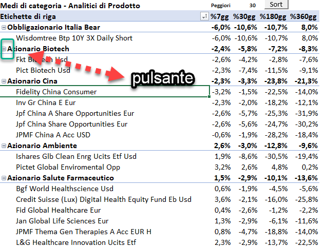 Cliccandi sul pulsante ‘+’ accanto ad una singola asset class si vanno ad esplodere i singoli prodotti presenti in archivio per quella asset-class.